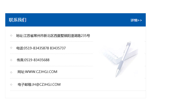 地址:常州市新北區友邦商務大廈1幢16、17層  電話:0519-85101652  傳真:0519-85112595  郵編:213022  網址:www_cz-jiayue_cn.fsjlyc.com  郵箱:xiajifengaa@163.com
